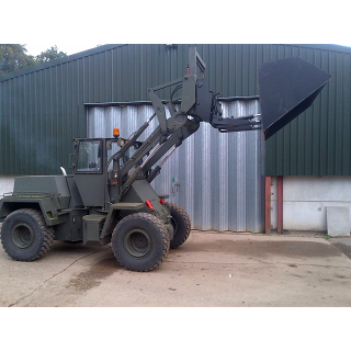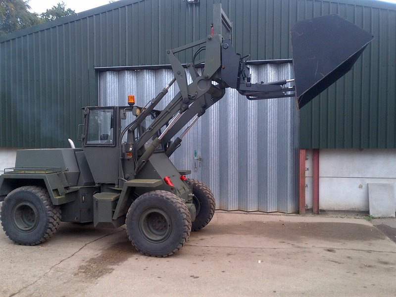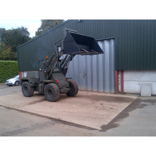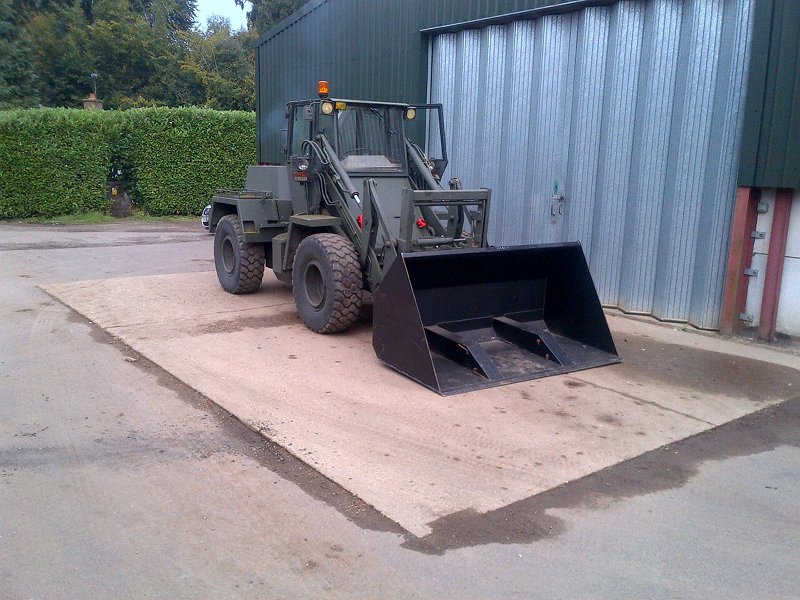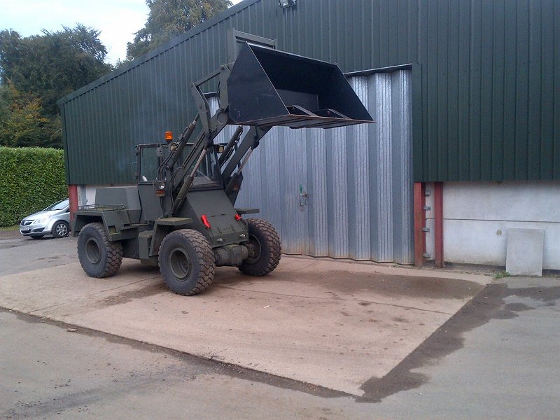 Tiptoe bucket adapted for military spec JCB loader. Note also, the bi-folding industrial unit door in the background. We installed that too!