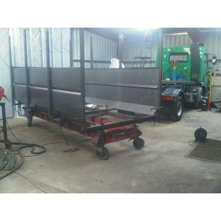 Hook loader bins all fabricated from jig. All steel sheets guillotine cut and folded in house.