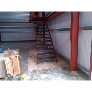 Industrial staircase, stringers and treads. Hand rails in key clamp or bespoke options. All project steelwork also available galvanised.