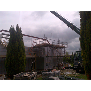Mezzanine floor for first floor offices and ground floor reception area, under construction.